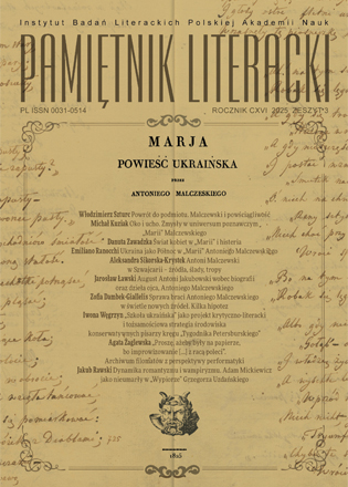 Główny korpus tekstów niniejszego numeru poświęcony jest Antoniemu Malczewskiemu (1793-1826) i jego powieści poetyckiej Maria (1825). Autorzy i autorki artykułów zastanawiają się nad "pierwiastkiem ukraińskim" utworu, pochylają się nad sprawą epistemologii w Marii, a konkretnie - poznania zmysłowego oraz próbują zrozumieć świat kobiecy poematu. Próbując wyjaśnić tajemnice biografii poety, podążają jego tropem do Szwajcarii i pytają o rodzinne koneksje - o syna i braci Antoniego.