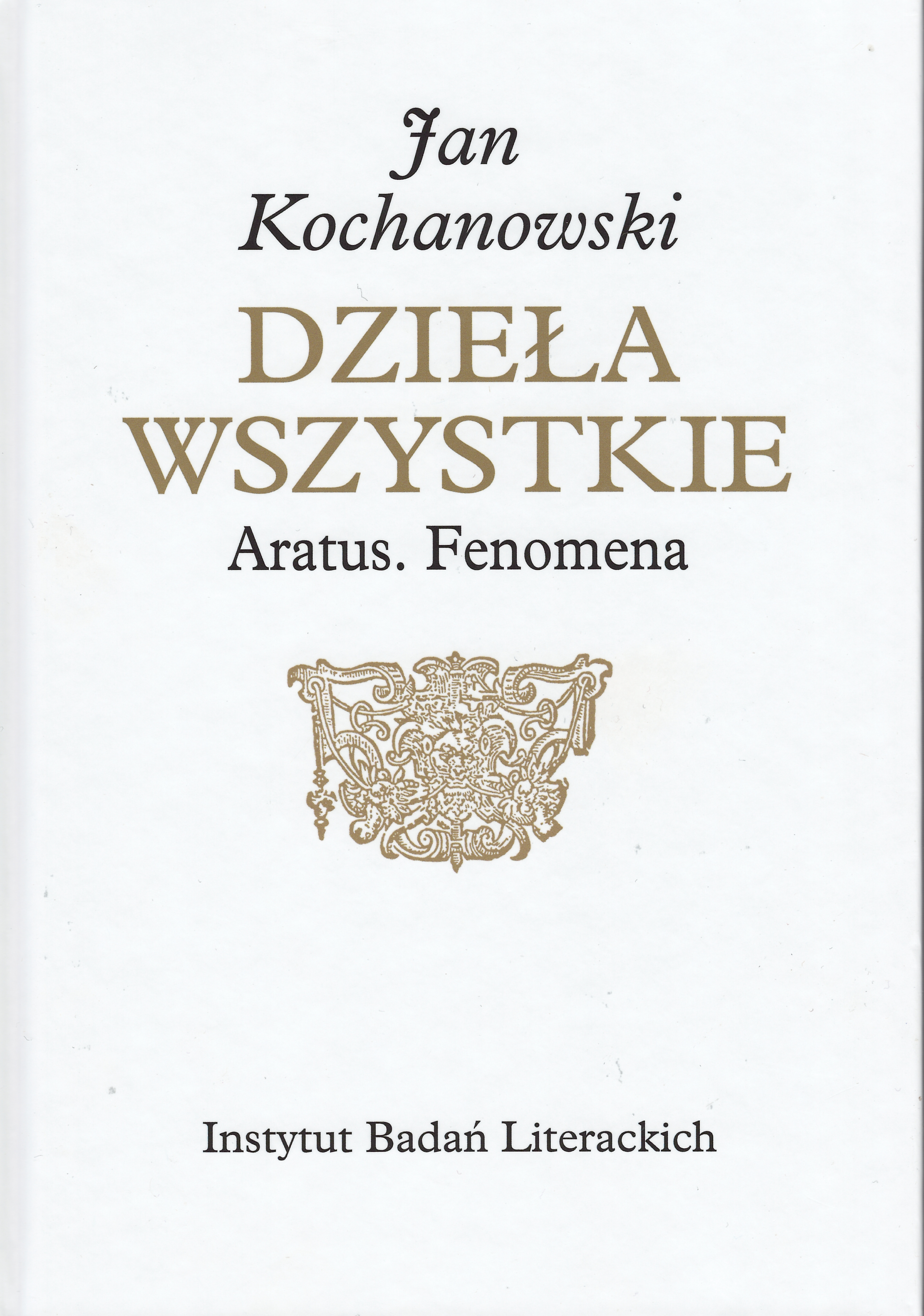 Dydaktyczny poemat astronomiczny hellenistycznego poety i lekarza greckiego Aratosa z Soloj (ok. 310 p.n.e. - ok.245 p.n.e.) „O znakach na niebie”, opisujący poszczególne konstelacje gwiazd, został przetłumaczony na łacinę przez Marka Tulliusza Cycerona. Niestety, przekład ten zachował się jedynie fragmentarycznie, ale okazał się na tyle fascynujący dla renesansowych humanistów, że Jan Kochanowski postanowił uzupełnić brakujące fragmenty i w ten sposób powstało pierwsze z zamieszczonych w niniejszym tomie dzieł: łaciński utwór pod tytułem „M. T. CICERONIS ARATUS Ad Graecum exemplar expensus, et locis mancis restitutus. Per IOANNEM COCHANOVIUM. Cum Adnotationibus. Eiusdem autoris super Festi Auieni Arataeorum paraphrasim, et Germanici Caesaris fragmenta, animaduersiones, siue lectionum coniecturae” (1579). Teraz możemy zapoznać się z jego tekstem, zarówno w reprodukcji fototypicznej, jak i transkrypcji oraz tłumaczeniu Roberta A. Sucharskiego, pomagając sobie obszernymi objaśnieniami i komentarzami edytorskimi. Redaktorzy zamieścili także zachowane fragmenty łacińskiego oryginału.