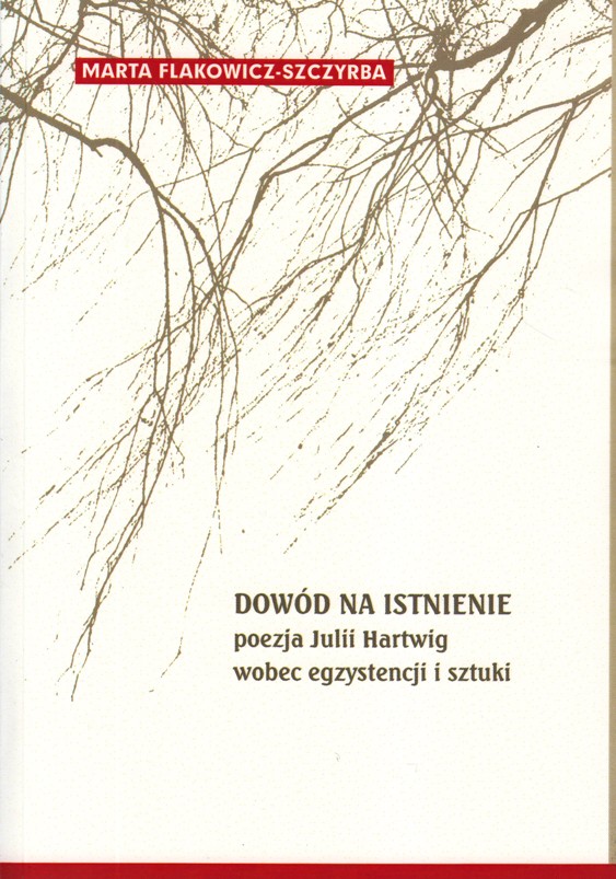 Autorka monografii rozważa problematykę egzystencjalną w poezji Julii Hartwig, której niezbywalny aspekt stanowią wychylenie w kierunku metafizyki oraz refleksja nad sztuką jako równoprawną płaszczyzną istnienia. Kluczami do interpretacji tych zagadnień są kategorie bytu, epifanii, apokatastazy, a następnie pamięci i doświadczenia. Umieszczenie dociekań w kręgu hermeneutyki Gadamera oraz filozofii podmiotu pozwoliło uwypuklić główne zręby poetyckiego światopoglądu Hartwig. Widzi ona egzystencję jako projekt rodzący się we wciąż ponawianych pytaniach o autentyczność i sens bycia. Konstytutywna dla podmiotu okazuje się jego wola uczestnictwa w świecie oraz sensotwórcza aktywność. Flakowicz-Szczyrba koncentruje się na obecności swoistej dyspozycji metafizycznej owego podmiotu oraz nowoczesnej świadomości języka. W twórczości Julii Hartwig język stanowi instrument poznawania rzeczywistości, a podmiot naznaczony jest świadomością jego konwencjonalizującej i pośredniczącej funkcji. Świat jawi się jako zawsze uwikłany w tekstową reprezentację. Założenia te spaja przekonanie o uprzywilejowaniu w liryce Hartwig wizualnej percepcji bytu.